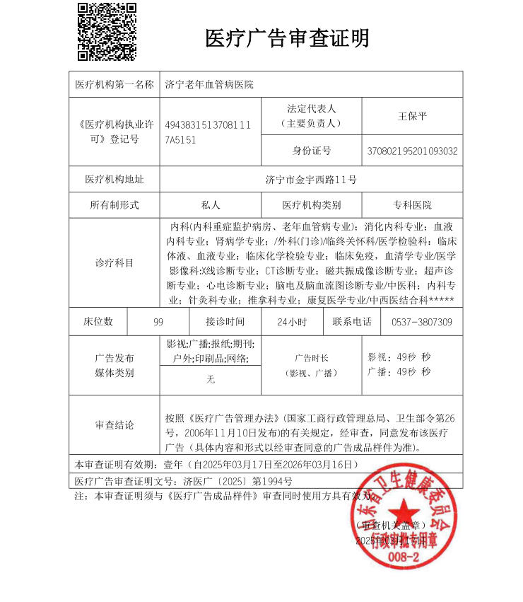 發(fā)布時(shí)間:[2015/4/29 13:58:10] 瀏覽次數(shù):[14] 來源:濟(jì)寧老年血管病醫(yī)院